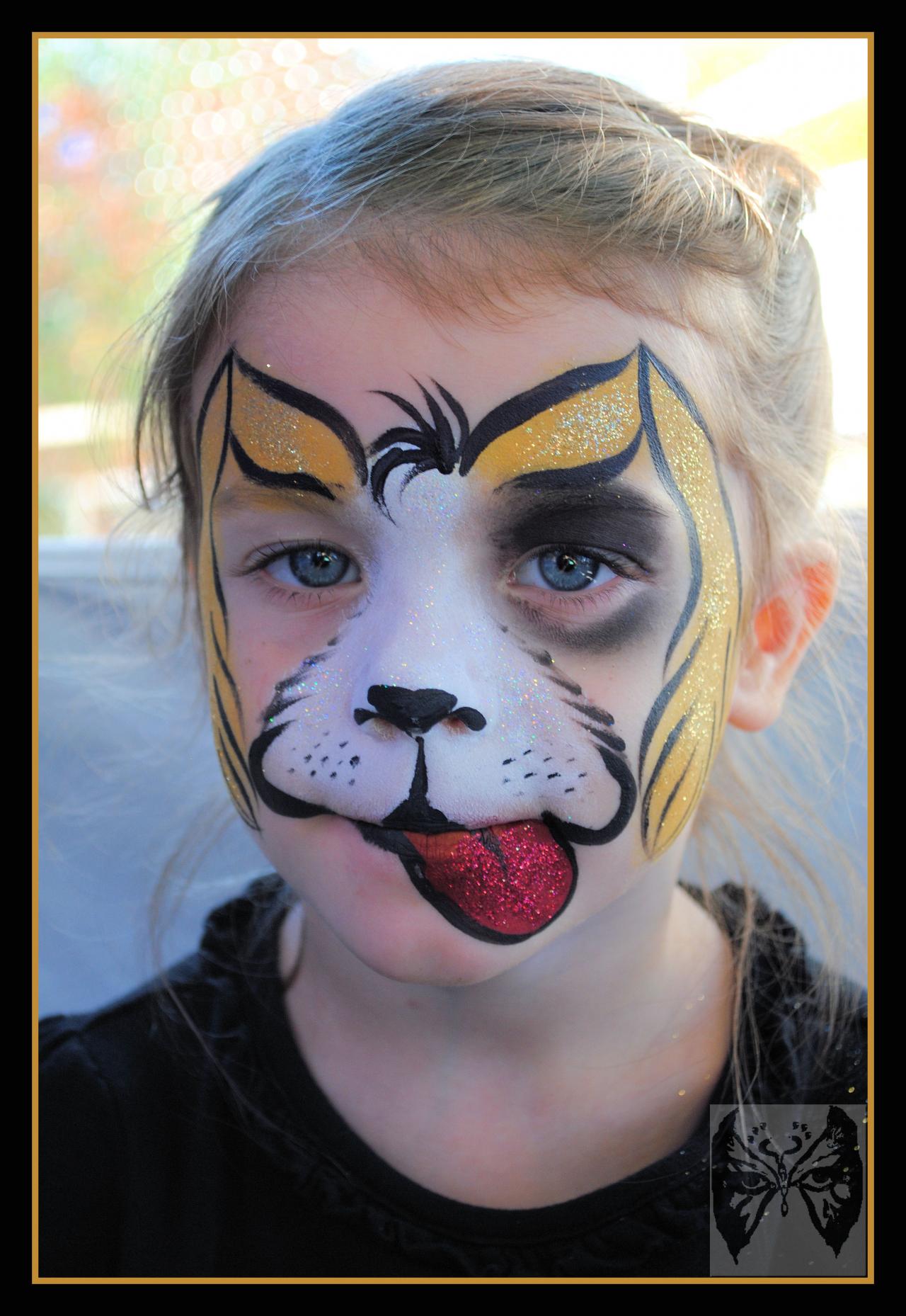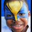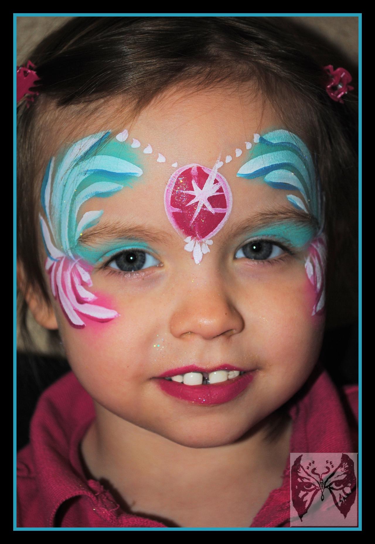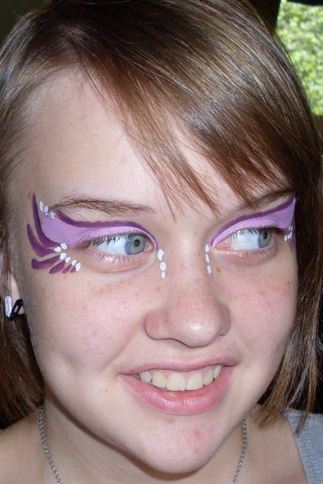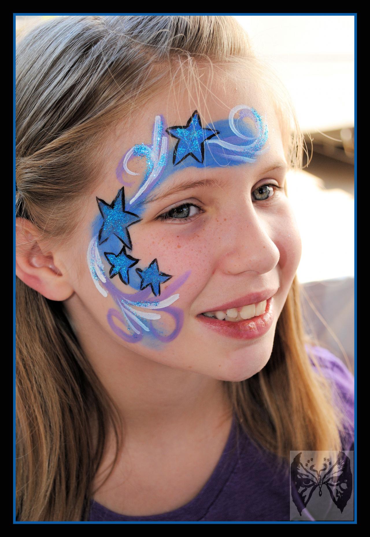 All of our Face Art designs are created using only Professional Face and Body Art Cosmetics, that are made for use on the skin. These water-based colors are hypoallergenic and remove easily with warm water and mild soap on a washcloth. Most designs take us less than 5 minutes to paint (yes, even the full face designs!) and can be customized to match outfits or party themes.