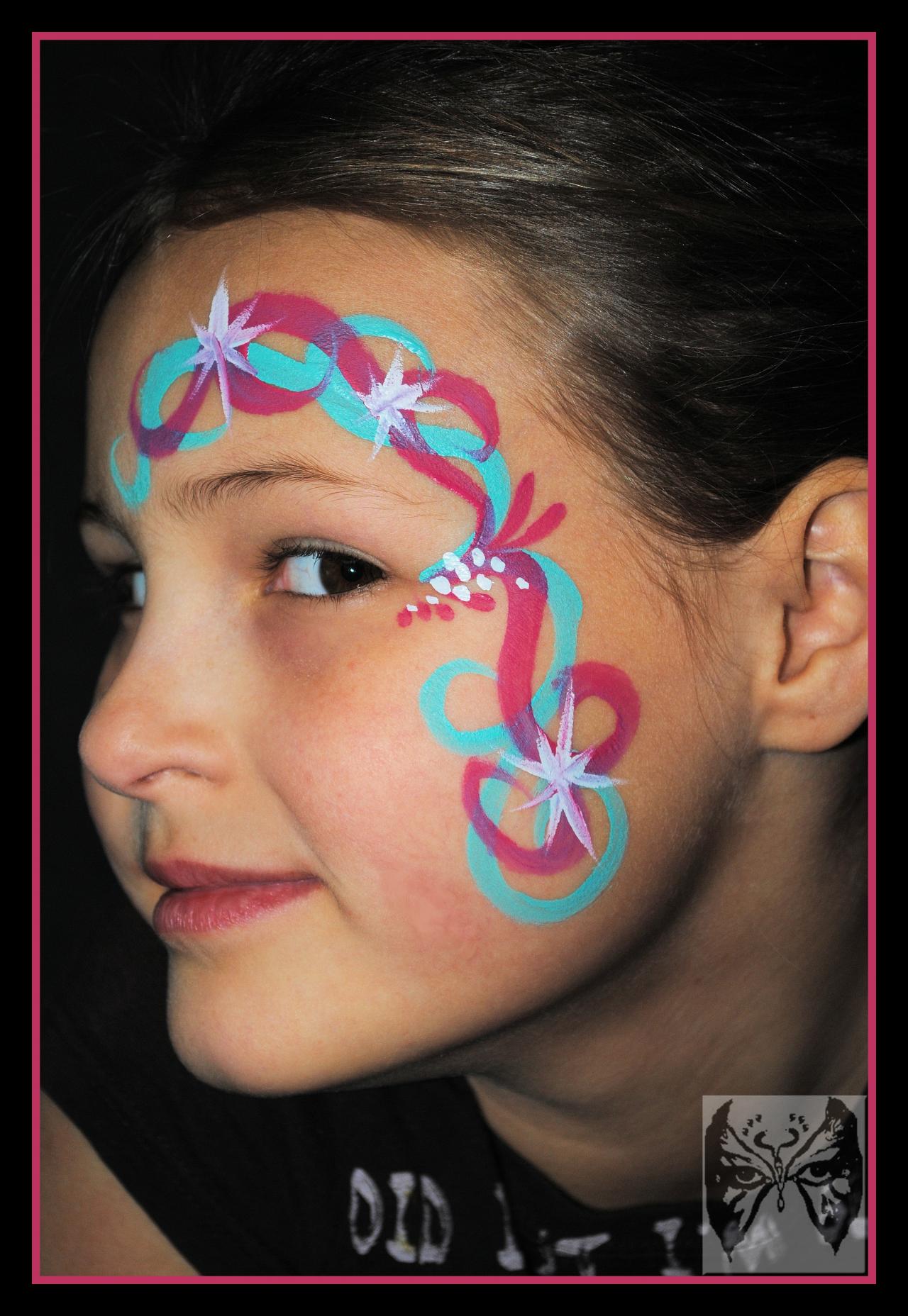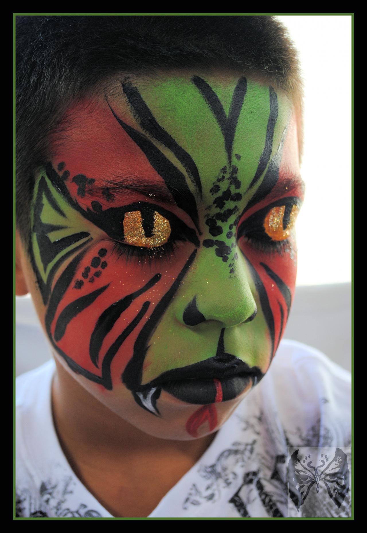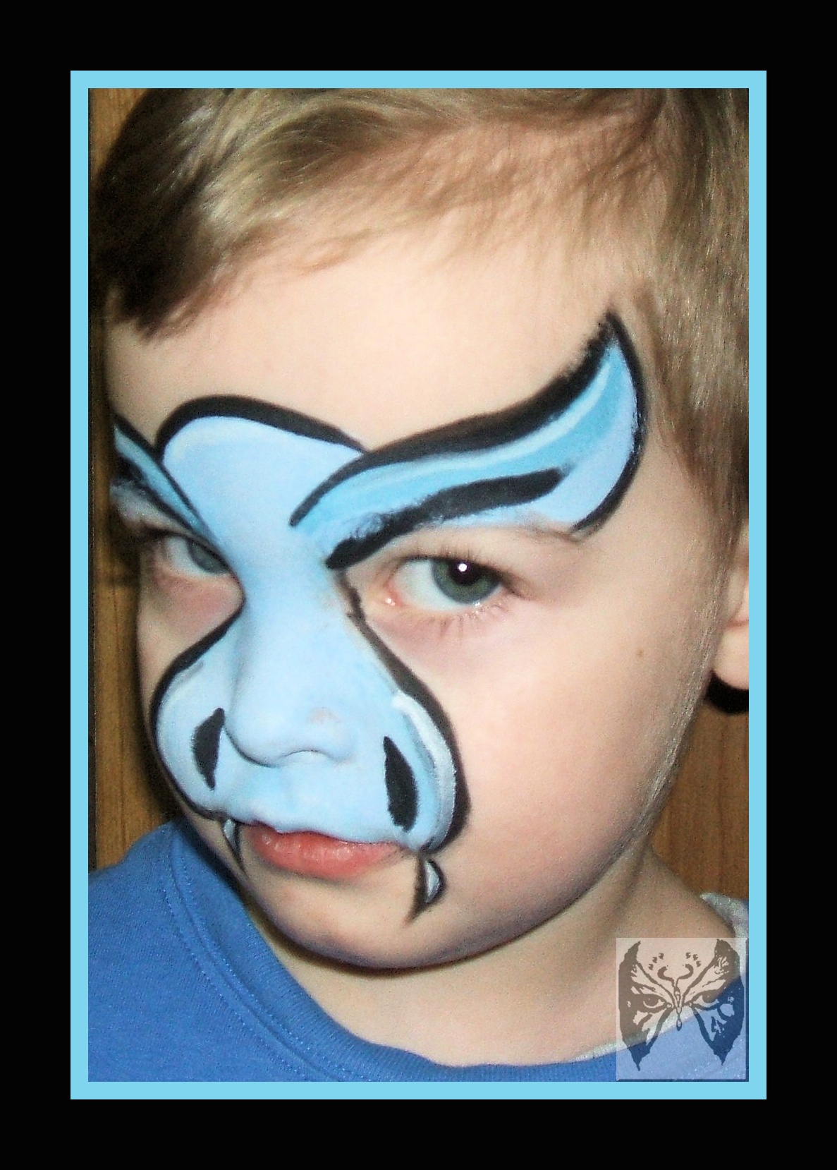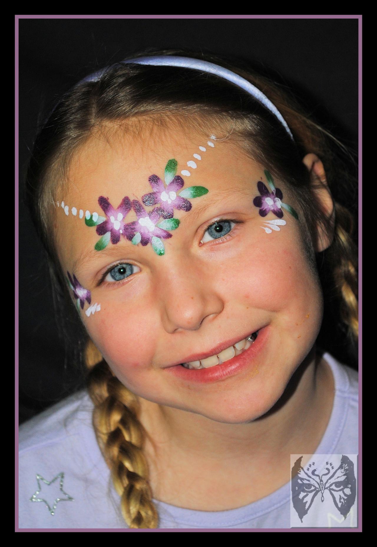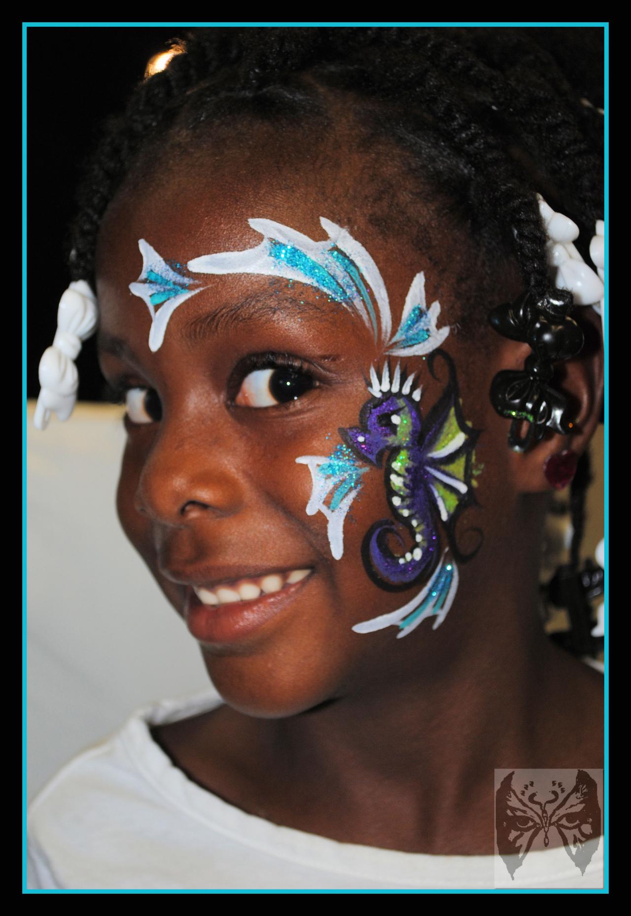 All of our Face Art designs are created using only Professional Face and Body Art Cosmetics, that are made for use on the skin. These water-based colors are hypoallergenic and remove easily with warm water and mild soap on a washcloth. Most designs take us less than 5 minutes to paint (yes, even the full face designs!) and can be customized to match outfits or party themes.