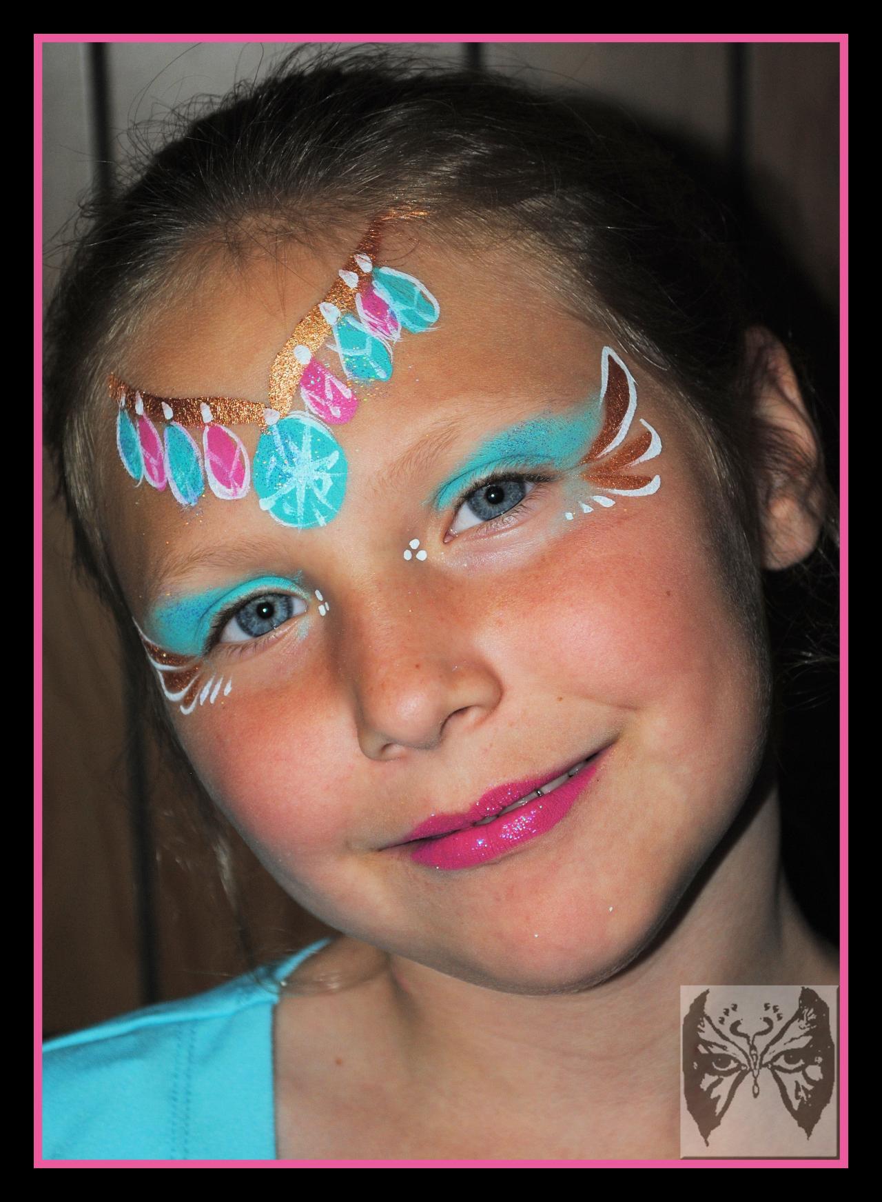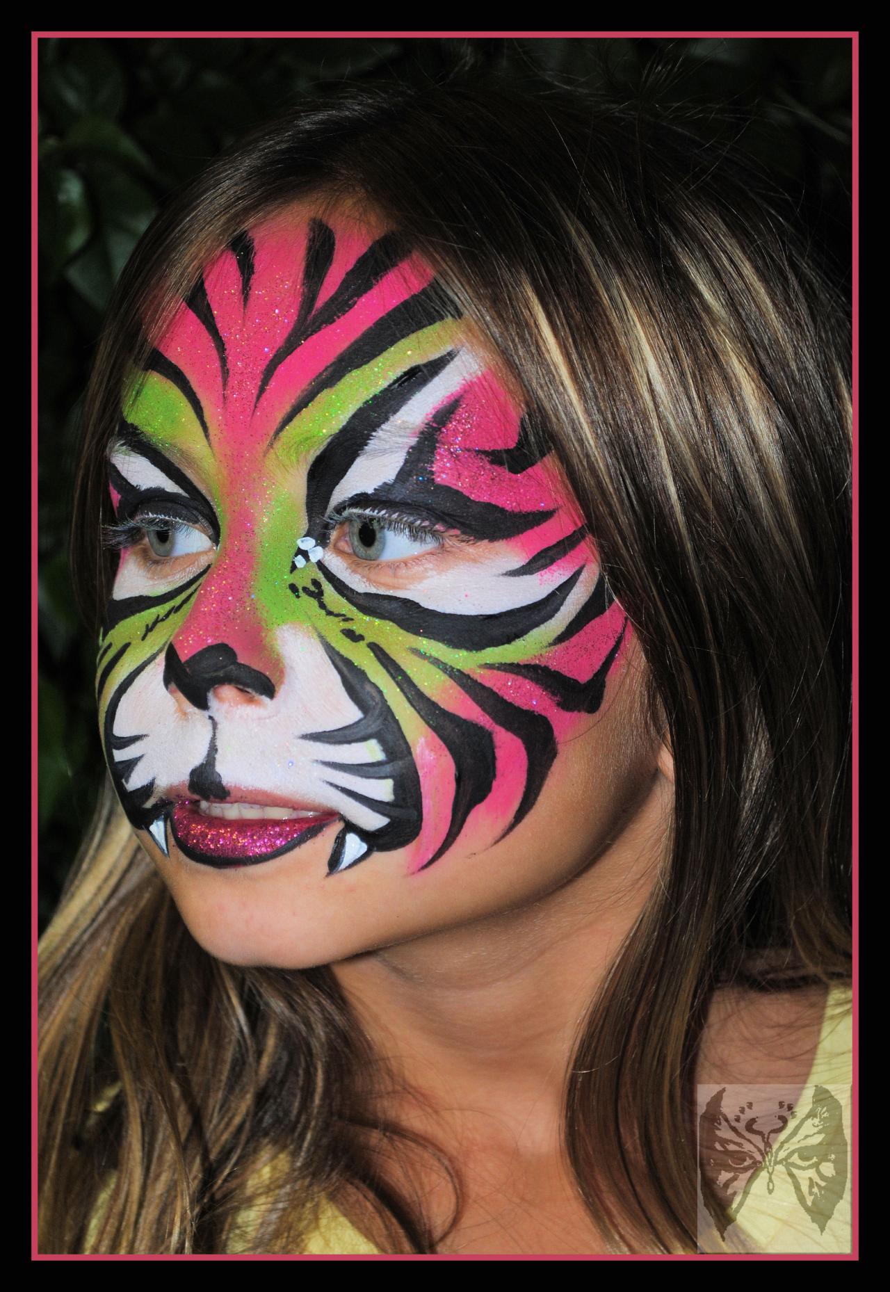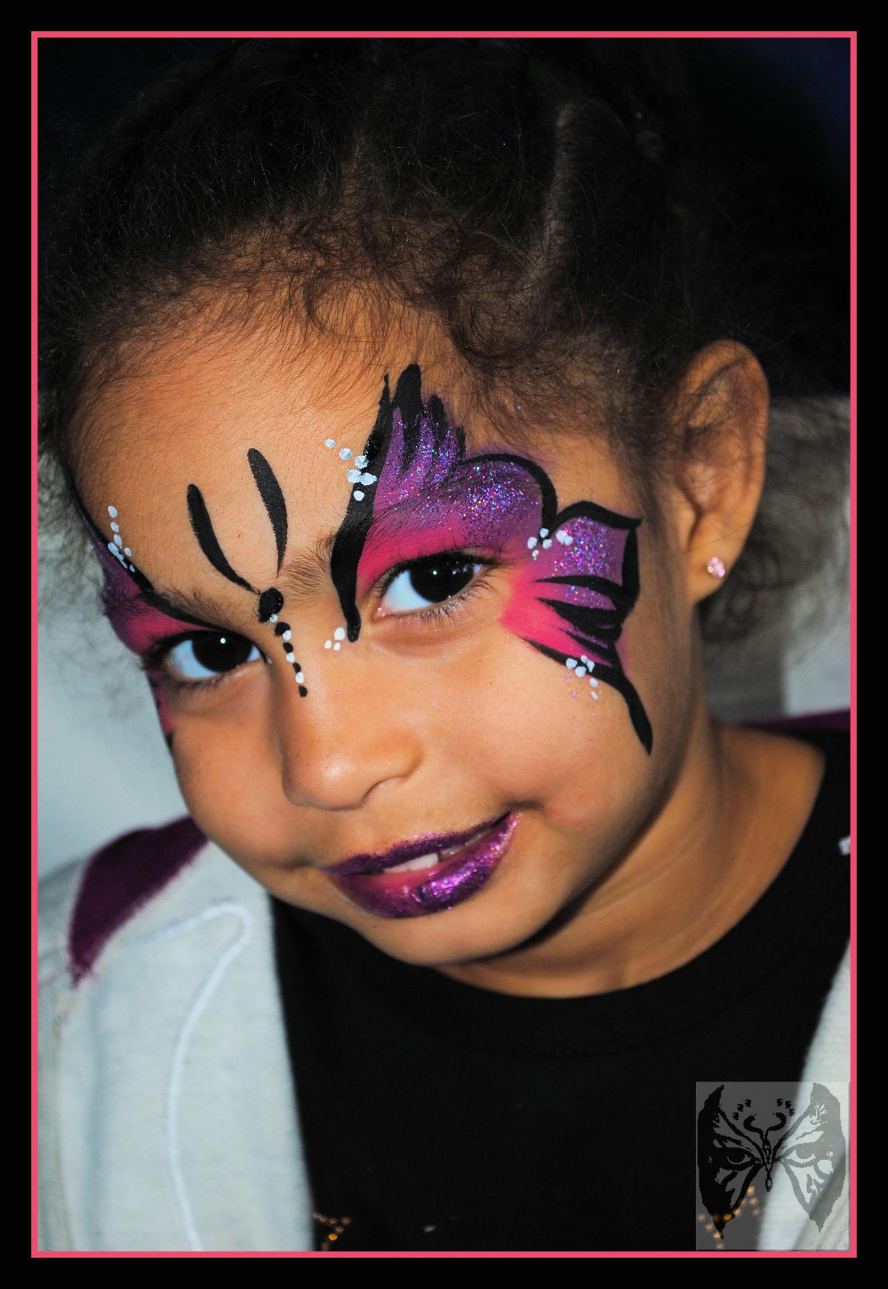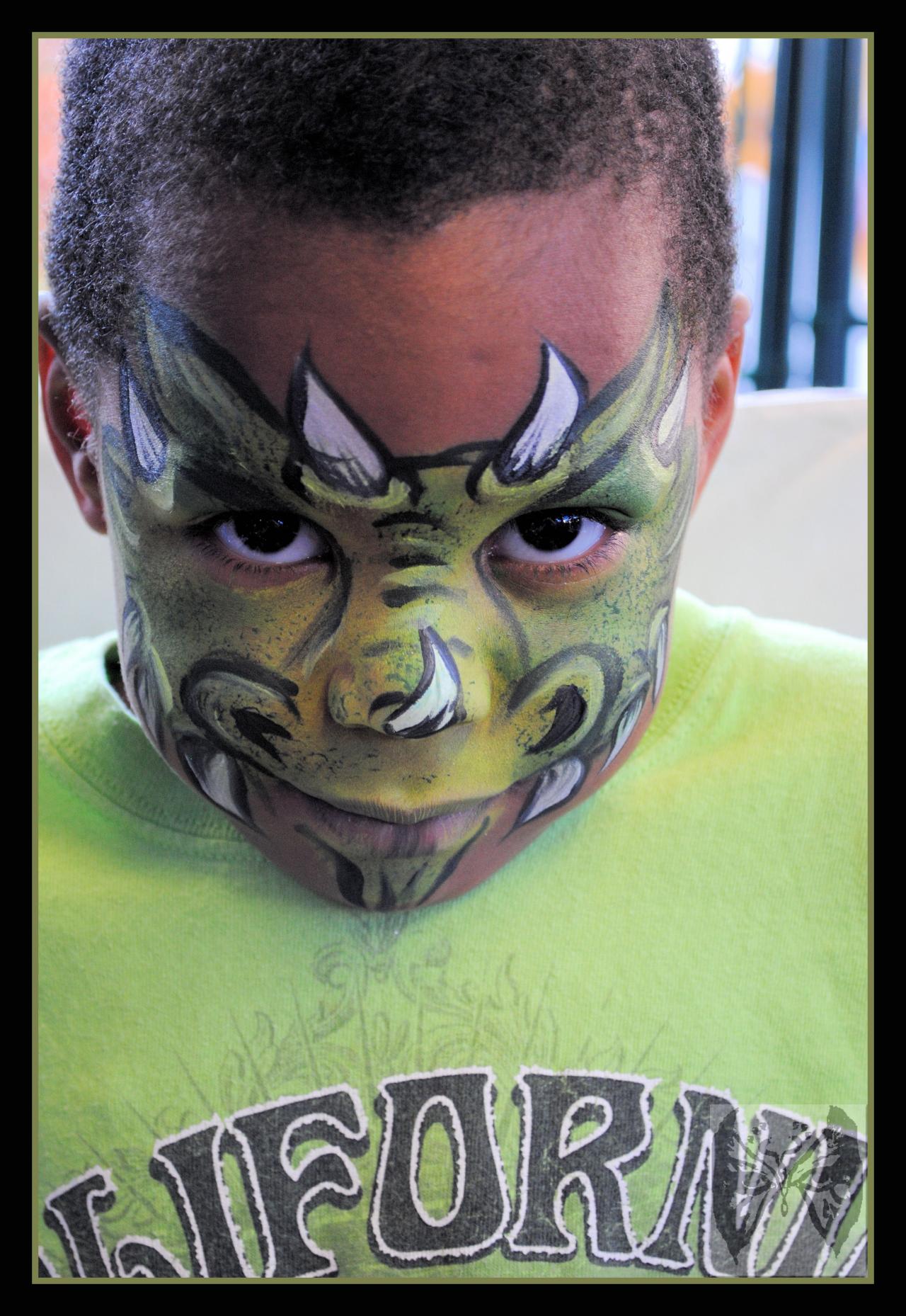 All of our Face Art designs are created using only Professional Face and Body Art Cosmetics, that are made for use on the skin. These water-based colors are hypoallergenic and remove easily with warm water and mild soap on a washcloth. Most designs take us less than 5 minutes to paint (yes, even the full face designs!) and can be customized to match outfits or party themes.