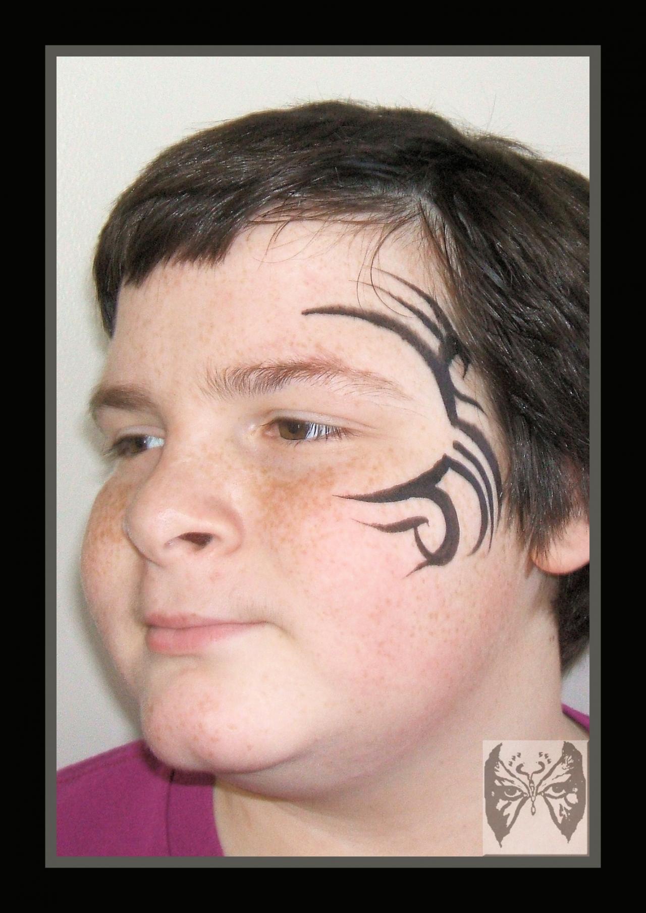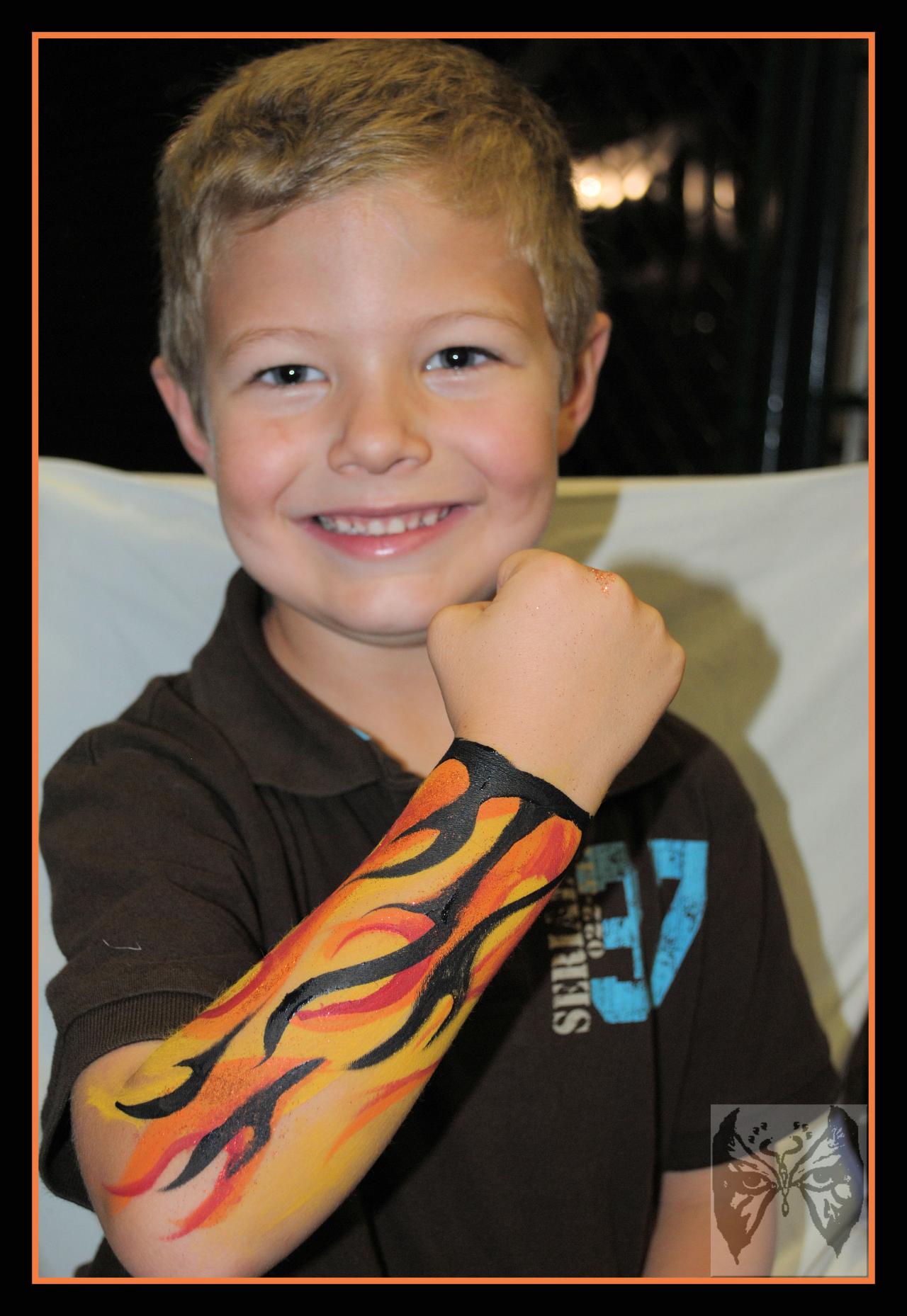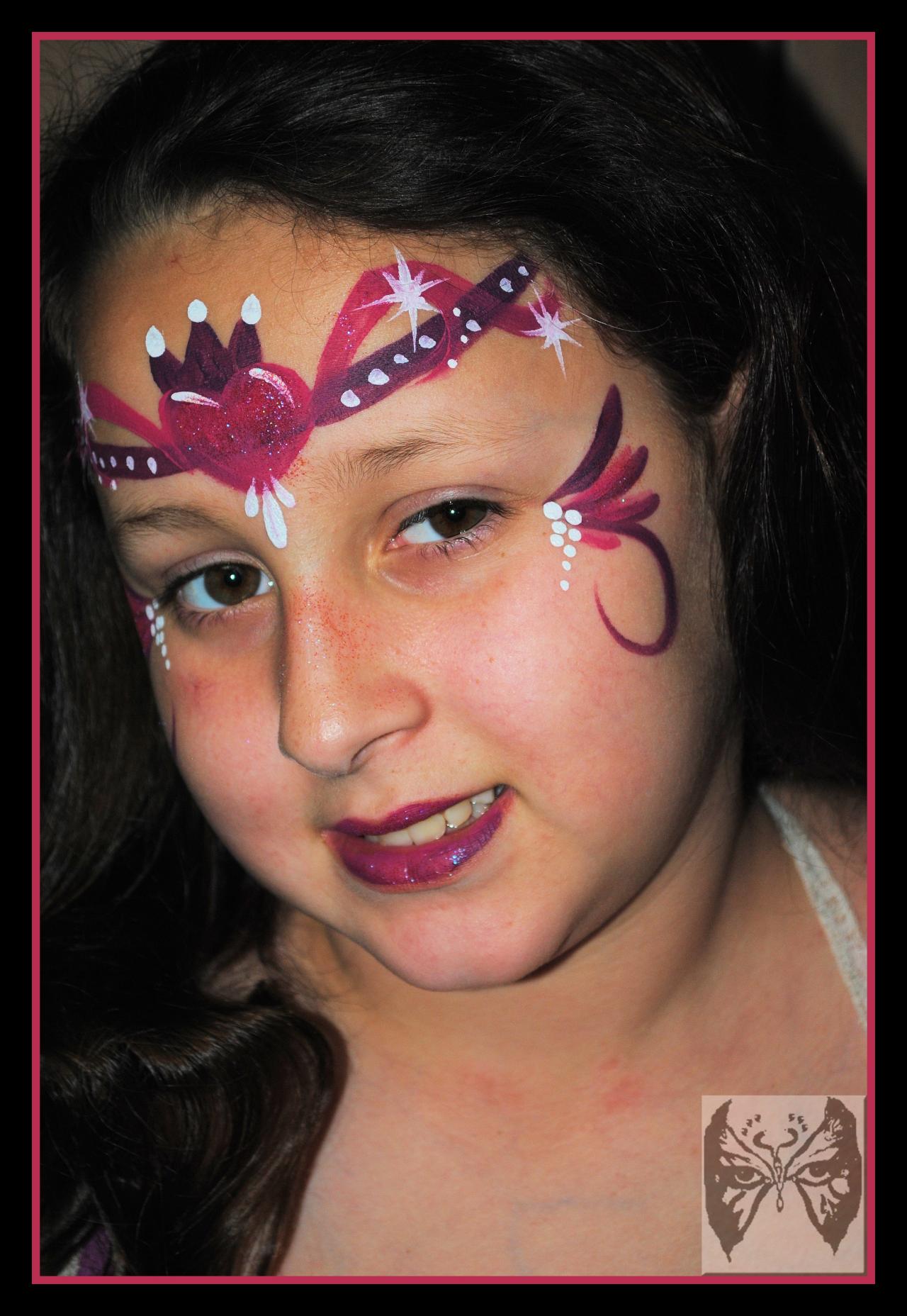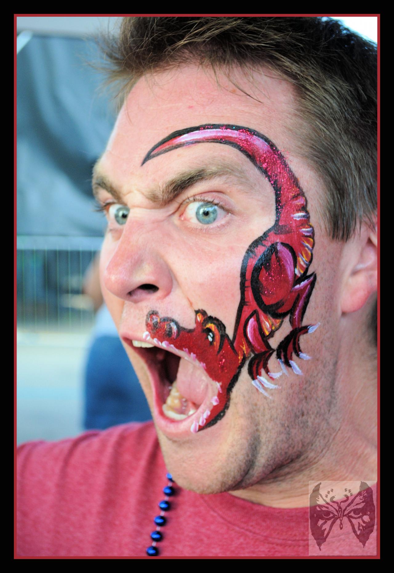 All of our Face Art designs are created using only Professional Face and Body Art Cosmetics, that are made for use on the skin. These water-based colors are hypoallergenic and remove easily with warm water and mild soap on a washcloth. Most designs take us less than 5 minutes to paint (yes, even the full face designs!) and can be customized to match outfits or party themes.